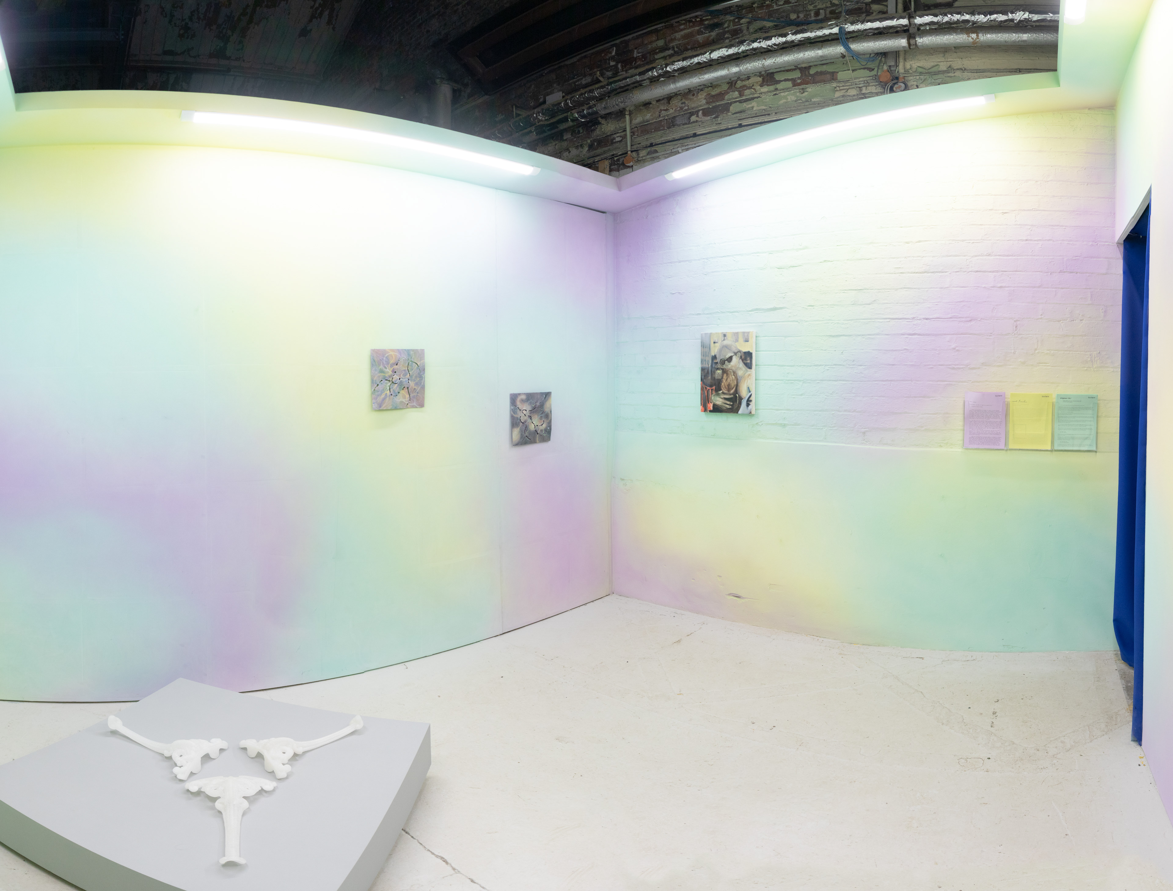 Within the one show, there are three. The final exhibition at our Ardwick gallery featured work by three artists, curated three times by three curators, with three titles and three exhibition texts. Each takes the same group of artworks, but contextualise them in different ways, drawing out new meanings from them and the relationships they develop with one another.